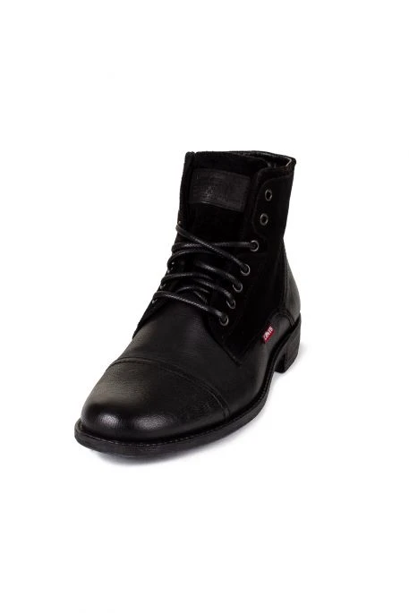 Bottines Levi’s Fowler pour homme. Chaussures mi-hautes, bout rond, hauteur de la tige 12,5 cm en pointure 41. Fermeture par lacets et étiquette logo de la marque sur le côté (RedTab).