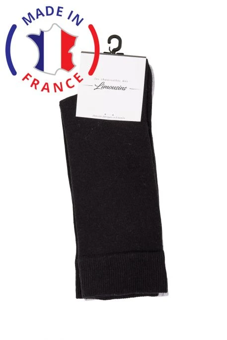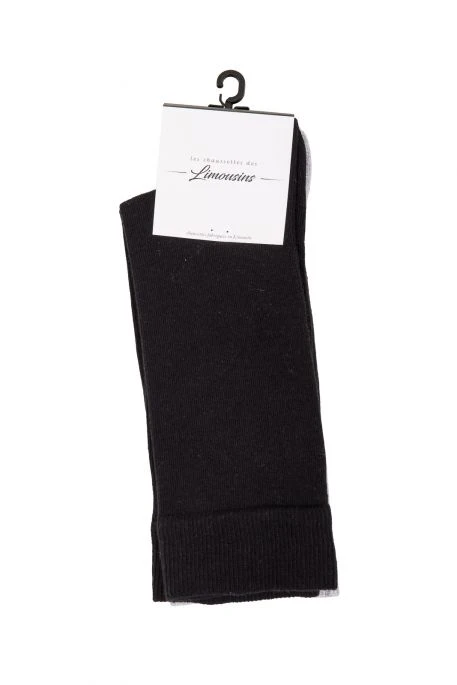 Lot de deux paires de chaussettes, l’ une unie grise, l’ autre unie noire. Chaussettes 100% Limousin,