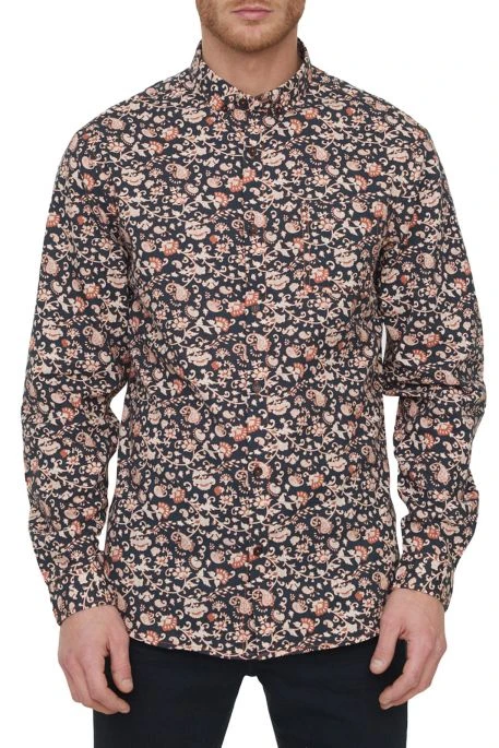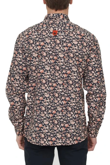 Chemise Lee Cooper pour homme, chemise manches longues, chemise en popeline de coton avec motif imprimé, poche poitrine, petite fantaisie au dos avec boutonnière rouge contrastante, col boutonné,
