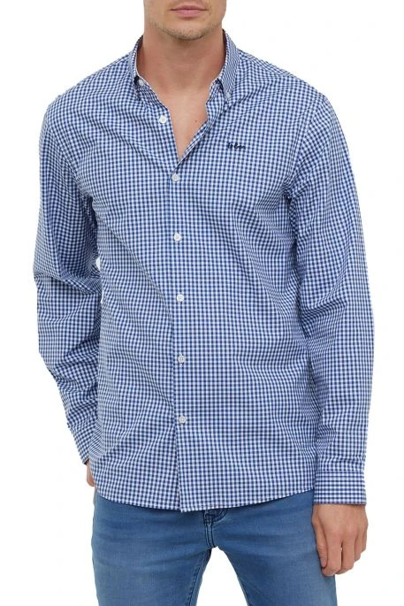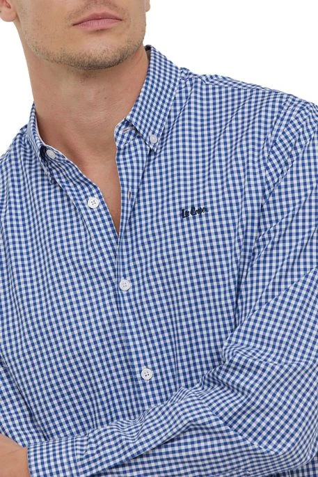 Chemise Lee Cooper pour homme, chemise en vichy de coton, chemise manches longues, col boutonné, broderie poitrine