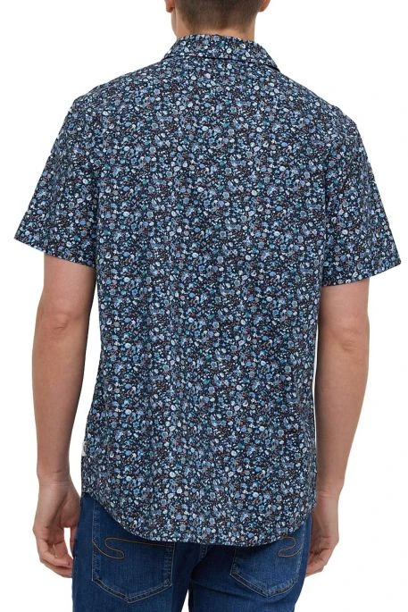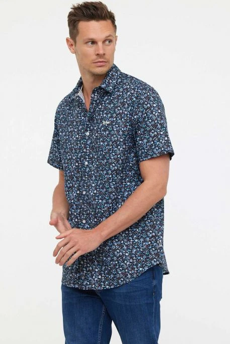 Chemise Lee Cooper Duya pour homme. Chemise à manches courtes, coupe comfort, fermeture par patte de boutonnage, poche poitrine plaquée avec broderie logo Lee Cooper. Tissu imprimé fleurs.