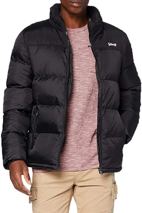Doudoune Schott Utah. Doudoune unisexe à manches longues, coupe classique, fermeture zippée et broderie siglé au niveau de la poitrine. Ce modèle de doudoune possède une capuche sous col, 2 poches basses zippées et 2 poches intérieures. Finition poignets en bord-côtes.