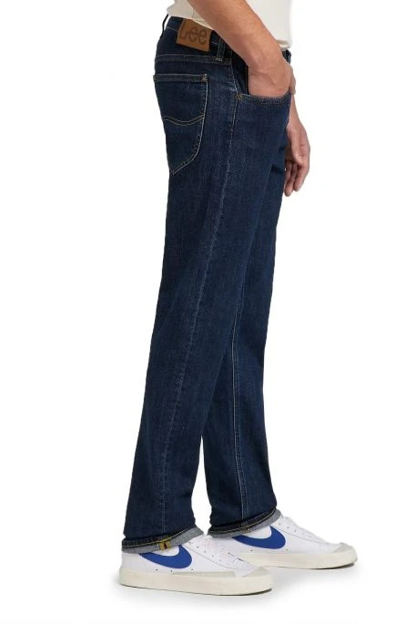 Jean Lee Daren Zip Fly pour homme. Jean de coupe droite, ajusté, légèrement resserré aux chevilles. Taille intermédiaire, 5 poches, braguette zippée. Ce jean est fabriqué dans une toile denim en coton