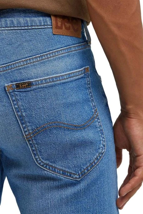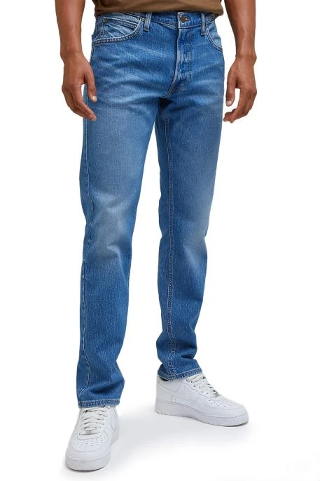 Jean Lee Daren Zip Fly pour homme. Jean de coupe droite, ajusté, légèrement resserré aux chevilles. Taille intermédiaire, 5 poches, braguette zippée. Ce jean est fabriqué dans une toile denim en coton.