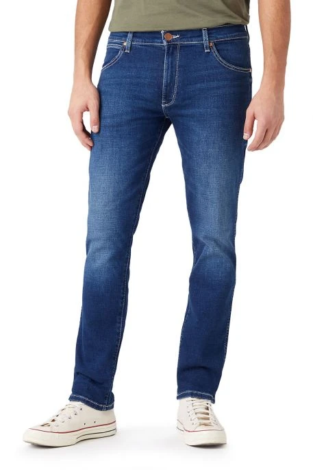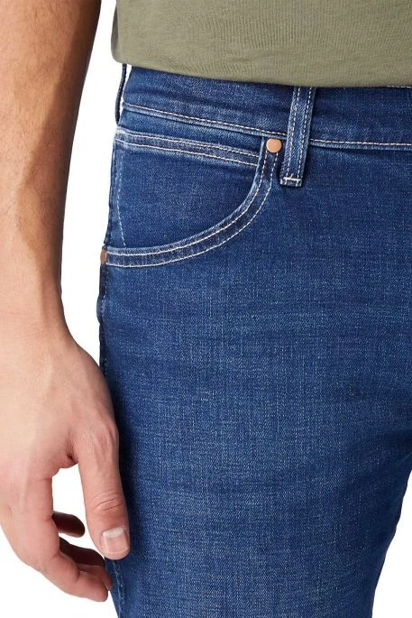 Jean Larston pour homme, Jeans Wrangler Larston pour homme. Jeans de coupe slim, bassin ajusté, resserré jusqu’à la cheville (mais pas skinny). Braguette zippée, 5 poches. Patch en cuir authentique arborant le logo de la marque.