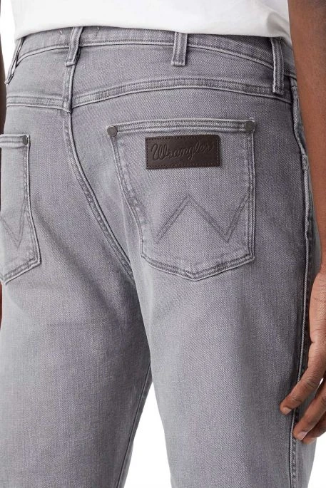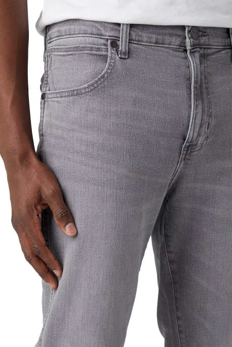 Jean Larston pour homme, Jeans Wrangler Larston pour homme. Jeans de coupe slim, bassin ajusté, resserré jusqu’à la cheville (mais pas skinny). Braguette zippée, 5 poches. Patch en cuir authentique arborant le logo de la marque.