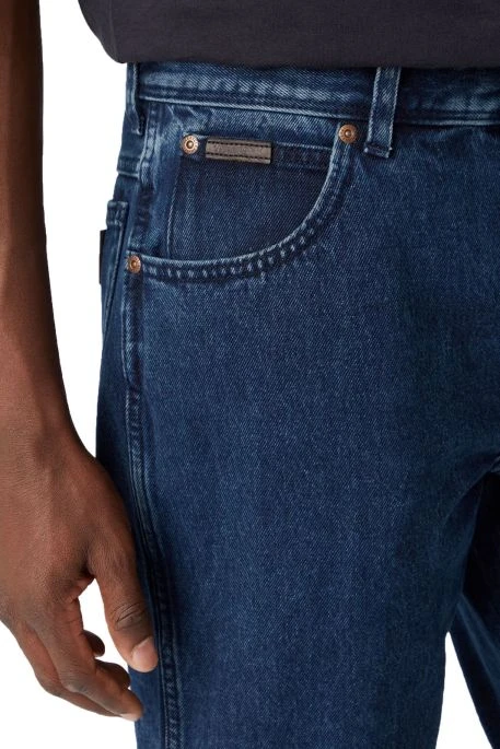 Jean Wrangler Texas pour homme. Jean de coupe droite confort, cuisse confort, taille haute, braguette zippée. Mélange de denim et de stretch pour un meilleur confort. Etiquette Wrangler discrète sur la poche gousset et Patch en cuir sur poche arrière.