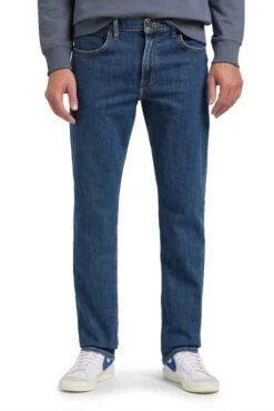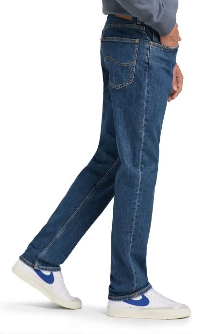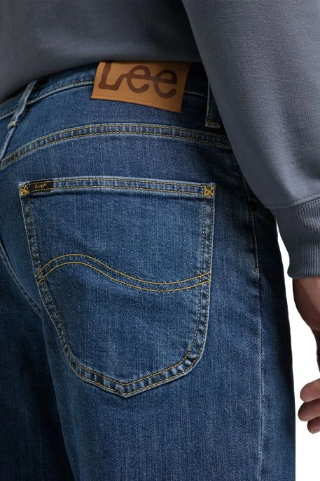 Jean Lee Brooklyn Straight pour homme. Jean de coupe droite classique des genoux jusqu’aux chevilles, cuisses amples, taille haute, fermeture par bouton et braguette zippée. Modèle de jean à 5 poches. Très beau denim.