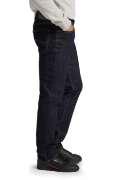Jean Lee Brooklyn Straight pour homme. Jean de coupe droite classique des genoux jusqu’aux chevilles, cuisses amples, taille haute, fermeture par bouton et braguette zippée. Modèle de jean à 5 poches. Très beau denim.