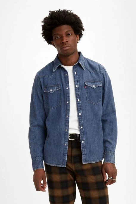 Chemise en jean Levi’s® Barstow Western pour homme. Chemise en jean de coupe droite classique, manches longues, sans stretch. Ce modèle possède deux poches poitrine plaquées à rabat bouton pression. Fermeture par patte de boutonnage à boutons pressionnés.