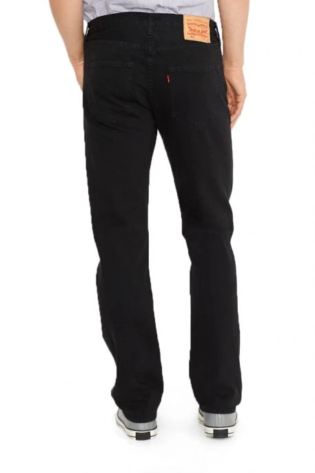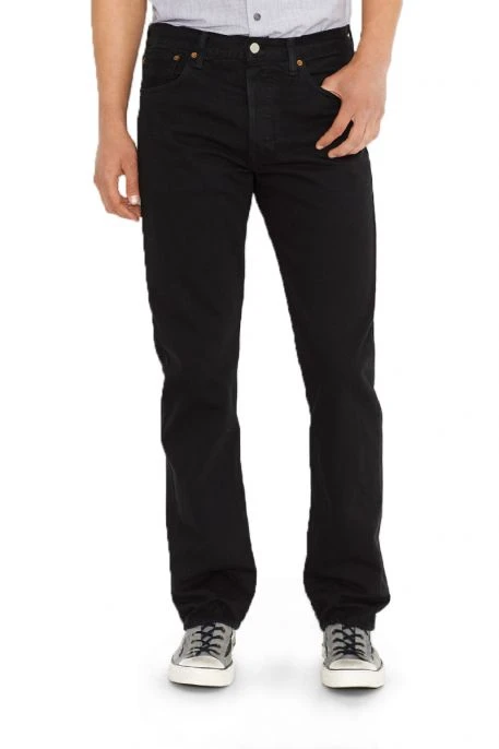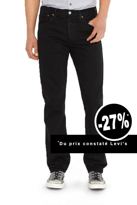 Levi’s® 501® pour homme. Ce jeans unique est dit « black black » ; en effet, il a été, tout d’abord, réalisé avec un fil noir au lieu d’un fil indigo, puis, surteint en noir. Cette technique permet ainsi d’obtenir une toile noire pleine d’intensité et de profondeur. Cet article, avec ses 5 poches, sa coupe droite et sa braguette boutonnée, offre aussi un grand confort d’utilisation.