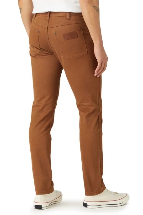 Pantalon en toile Larston pour homme, Jeans Wrangler Larston pour homme. Jeans de coupe slim, bassin ajusté, resserré jusqu’à la cheville (mais pas skinny). Braguette zippée, 5 poches. Patch en cuir authentique arborant le logo de la marque.