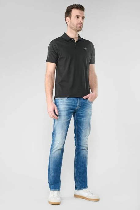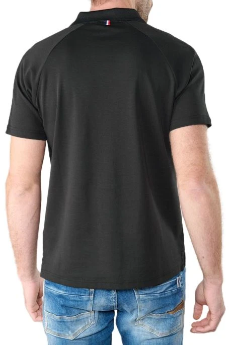 Polo Le Temps des Cerises Clab noir pour homme, polo avec fermeture par 2 boutons, inscriptions Le Temps des Cerises sur chaque épaule,