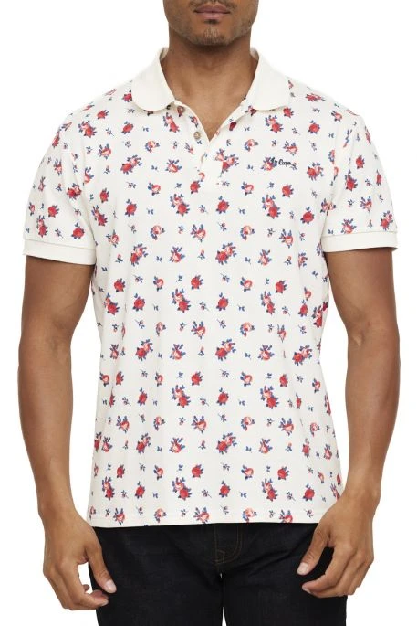 Polo Lee Cooper Breur pour homme, polo manches courtes, motif all-over de jolies roses, broderie Lee Cooper sur la poitrine, coupe regular fit,