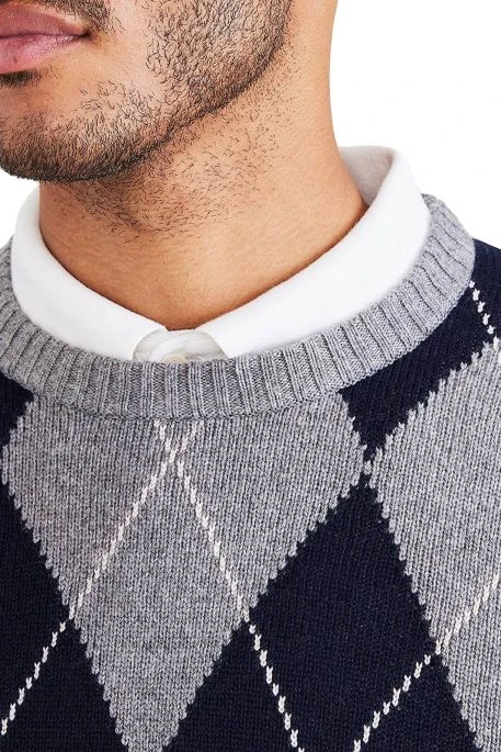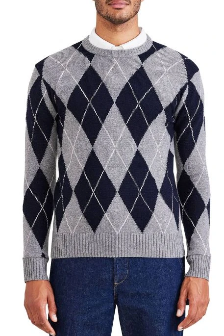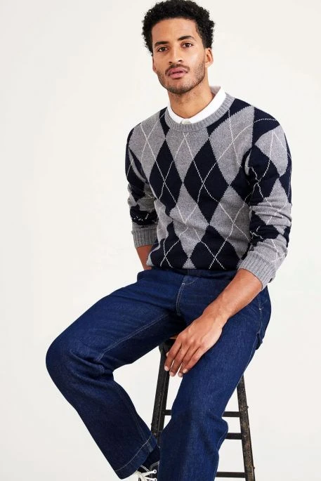Pull Dockers® Crafted Crewneck pour homme. Pull-over à losanges, manches longues, coupe droite, col rond. Finition à bord-côtes au niveau du col, des poignets et à la base du vêtement.