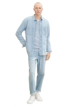 Pull pour homme de marque Tom Tailor, pull coupe droite, col V. Pull Tom Tailor avec logo brodé sur le devant, manches longues avec encolure en V.