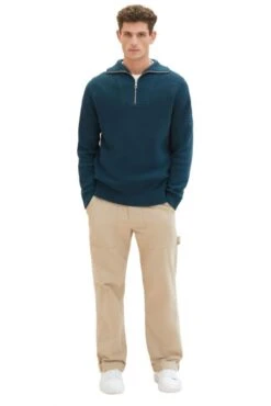 Pull Tom Tailor Troyer pour homme. Pull-over à manches longues, coupe droite, col montant zippé de style camionneur. Badge logo sur la manche gauche.