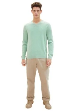 Pull Tom tailor pour homme, pull avec encolure en V et coupe regular, logo Tom Tailor sur la poitrine, 100% Coton coupe regular.