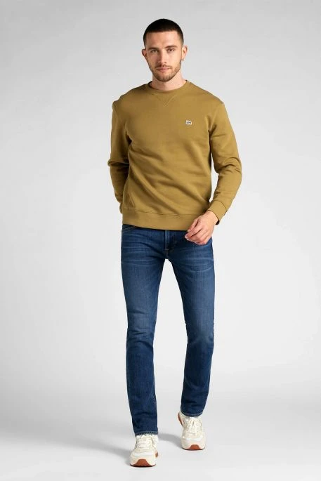 Sweat Lee Plain Crew pour homme. Sweat classique de coupe droite, manches longues, col rond ras du cou. Ce modèle possède un petit écusson de la marque sur la poitrine gauche.