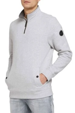 Sweat pour homme avec col camionneur, poches passepoilées sur le devant, bords ourlets côtelés, manches longues, coupe régulière avec un badge logo sur le haut de la manche, sweat confectionné avec du coton doux et durable