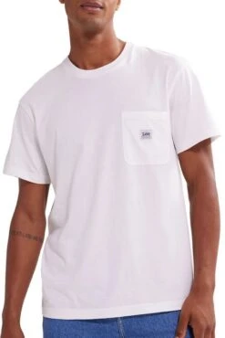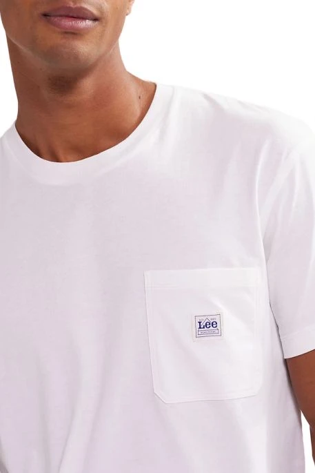 Tee Shirt Lee Workwear pocket blanc, tee shirt pour homme avec encolure ronde, manches courtes, poche poitrine avec le logo Lee, 100% coton, la coupe est décontractée.