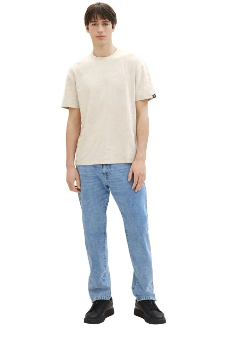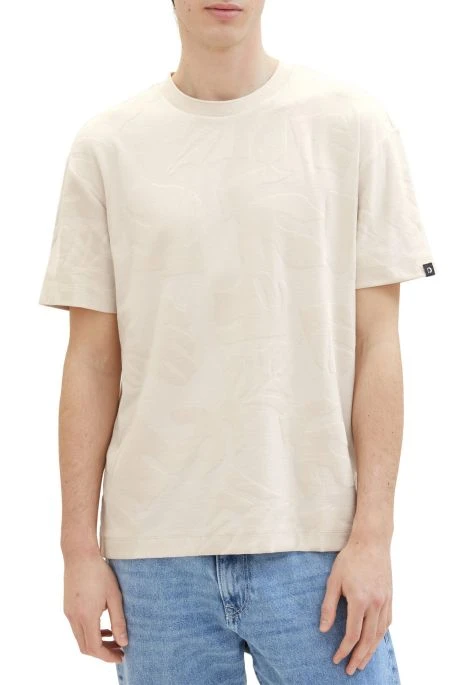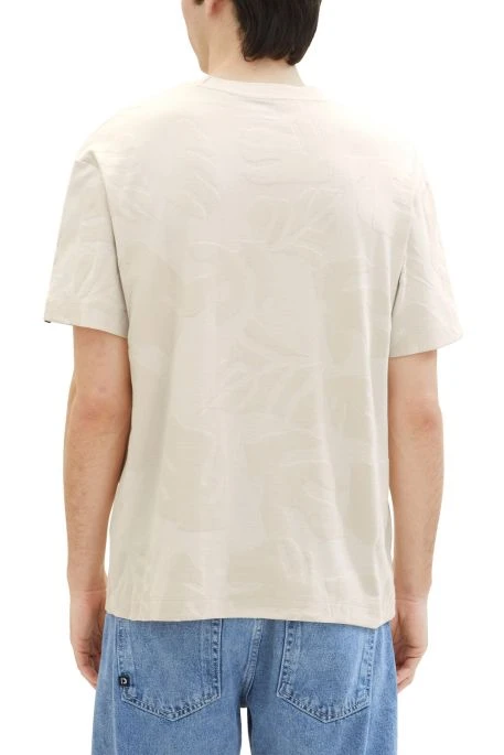T-shirt pour homme Tom Tailor. Tee-shirt manches courtes et col rond avec imrimé ton sur ton feuilles de palmiers. Coupe Relaxed Fit ample.