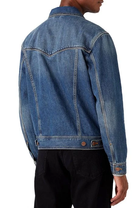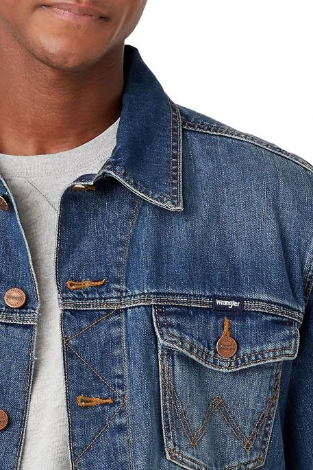 Veste en jean Wrangler Classic Denim pour homme. Veste de coupe droite, manches longues, fermeture par patte de boutonnage. ce modèle de blouson en jean possède un col pointu, 2 poches poitrine à rabat boutonné et 2 poches latérales.